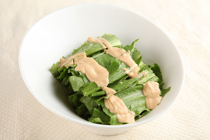 1、油麦菜本身略带苦味,但混合酱汁可以使这种苦味变成清爽感,很适合作为开胃小菜;