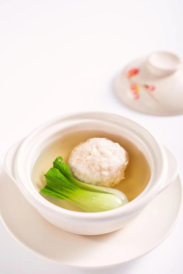国宴菜品:酸辣乌鱼蛋汤、虫草花狮子头