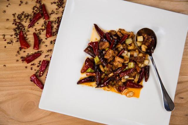 其中,燃汁剔炒宫保鸡是不可错过的一道名菜,别以为是寻常的民间菜,其实真真切切地上过国宴菜单。这里的宫保鸡不是我们常吃到的酸甜口,而是特有的糊辣口味,且带有荔枝口感。据介绍,这道菜的关键是燃汁技法,让辣椒和花椒的香气在高温下充分散发,却又恰到好处,才不会掩盖鸡肉本身的滋味。说起这道宫保鸡,鸡丁更是绝技——大厨手中的刀麻利地举起落下,气势不凡,听不到粗暴的剁骨声,利用巧劲,一只鸡很快就骨肉分离,成为小块的鸡肉。剔肉之后,还要经过刀背大力拍打,并以刀尖不断地扎入肉中,这样鸡肉丁在腌制时才能均匀入味,炒制时保持弹性。传承古法宫保鸡,辣咸鲜甜酸,五味层次分明,逐步递进,结尾的醋香更是巧妙。