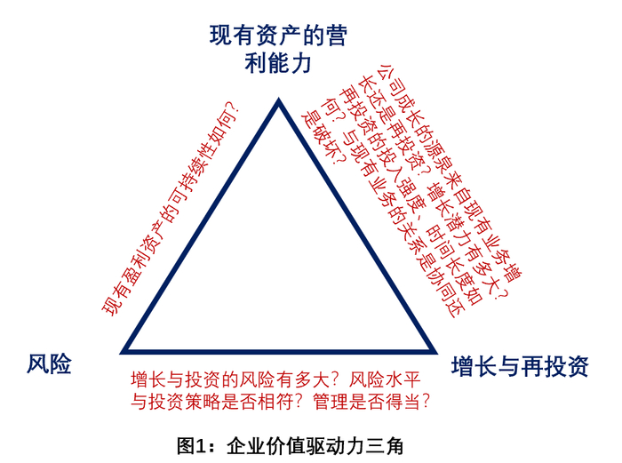 评估滴滴的价值,不妨按照前文所述的企业价值驱动三角模型,对现有资产的盈利能力、增长和再投资业务的潜力和风险做一个整体审视。