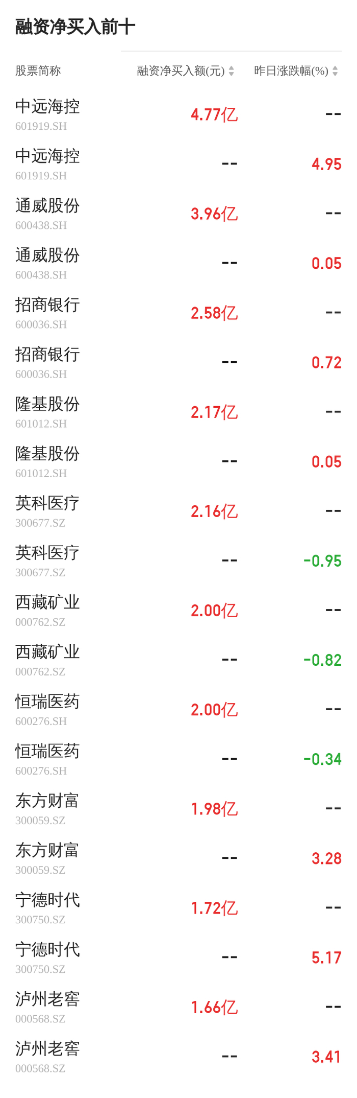 06月29日通威股份融资净买入3.96亿元,两市排名第2