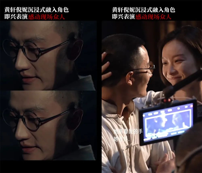 黄轩、倪妮在讲当年焚烧日货时,动情的哭戏。