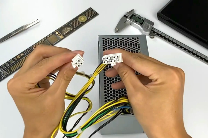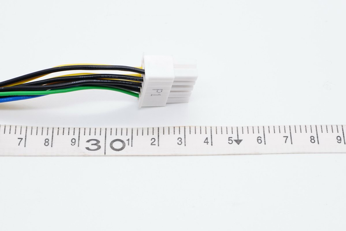 在接口上可以看到十分明显的变化,航嘉HK280-23PP电源基于ATX12VO标准制作,只保留12V输出电压,接头也并非传统ATX电源的24pin,而是采用全新的10pin接口。线缆共由黄色+12V、绿色PS/ON、蓝色-12V、黑色GND组成。另外还带有一个4pin接口,是CPU供电接口。