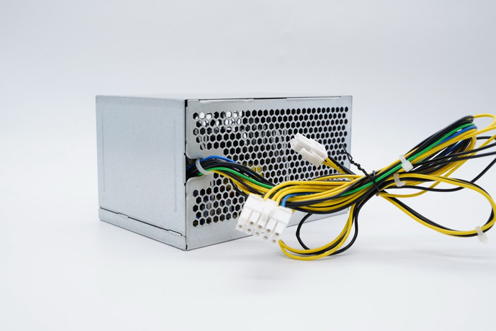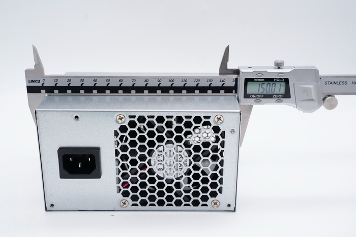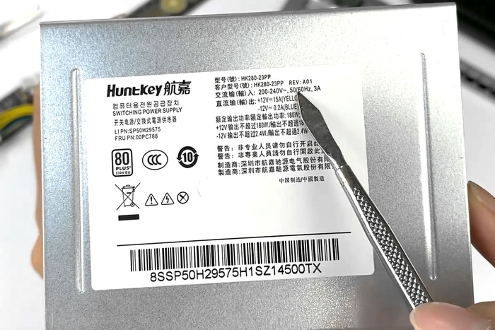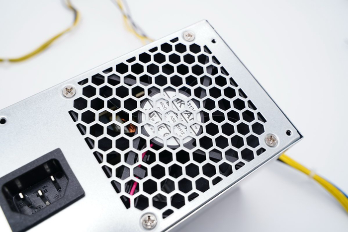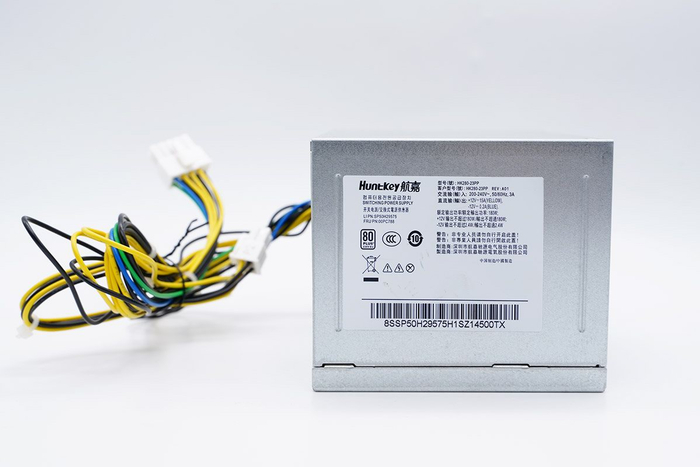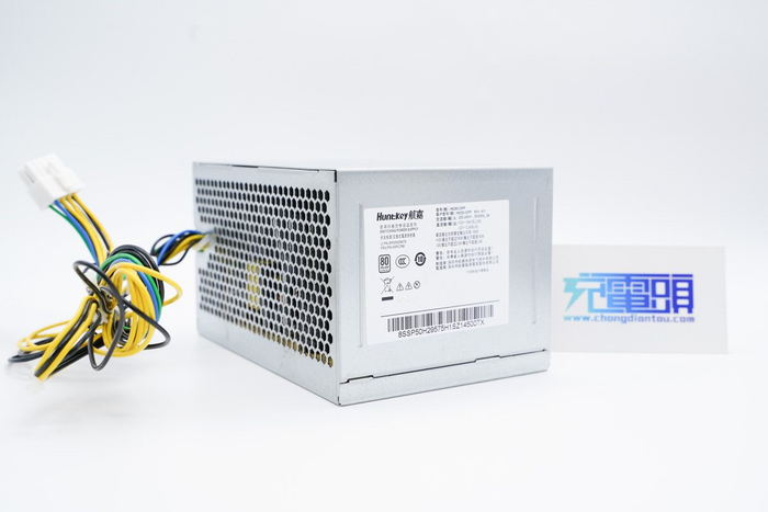 航嘉HK280-23PP电源采用电镀金属壳体制作,外形与传统ATX电源保持一致,前后贯通式散热设计,铭牌参数贴在侧面,因为只有12V电压,可以看到引出线缆明显比传统ATX线缆少。