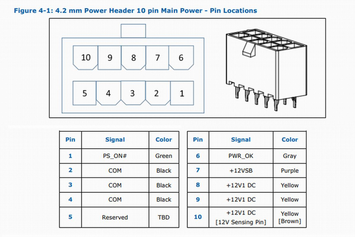 根据intel公布的ATX12VO规格书可以发现,10pin接口仅包含3根12V主供电线缆,待机电压也从5V变成了12V。