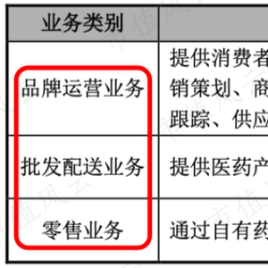 百洋医药有三块业务:品牌运营、批发配送、零售。