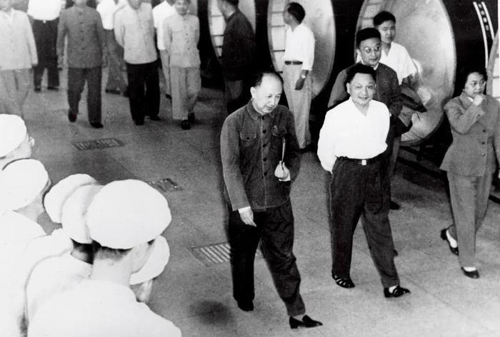 1965年5月,邓小平在钱学森的陪同下视察航天科研部门。