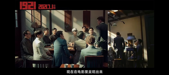:主要是会议比较难拍。开会这个事放在生活里,其实大家就可以知道,它在场景和动作上,其实都会显得很平淡,而《1921》里面的会议的戏很多。同时,这些会议的场景,因为是真实历史上的重要事件,我们要还原历史现场,不能做更改,那么还要把不同的会,拍成不同的气氛,让观众有不同的感觉,这个是电影最大的挑战。