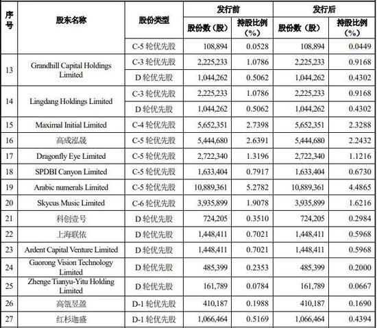 (最近一年发行人新增股东包括 Skycus Music Limited、上海科创投、张江火炬、Redwall Magic Limited、AI UnicornHoldings Limited、东方明珠传媒产业基金、高瓴昱盈、红杉迦盛、CR-CCT Industry Pilot Y Limited、Yunfeng Yitu Investment Holding Limited、招银致远、高瓴智成、Super BraveHoldings Limited、Grandhill CapitalHoldings Limited、LingdangHoldings Limited、高成泓晟、Gaorong Vision Technology Limited、Zhenge Tianyu-Yitu Holding Limited)
