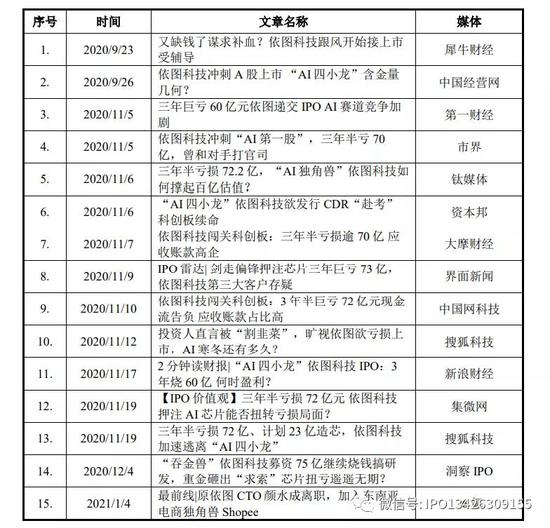 保荐机构持续关注媒体报道,通过网络搜索等方式,已经自查与发行人本次公开发行相关的媒体报道情况。自公司辅导备案材料在上海证监局网站公示至本问询函回复出具之日,媒体对公司本次公开发行的相关主要报道情况如下表所示: