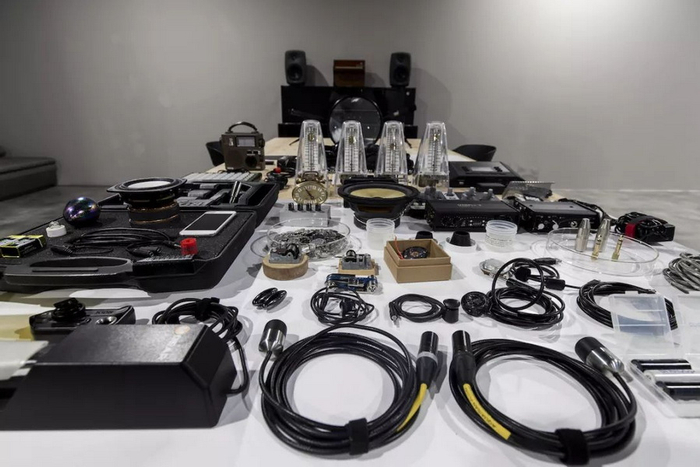 殷漪《真身》现场陈列的“声音设备”,他会在里面挑选物件为观演者表演。