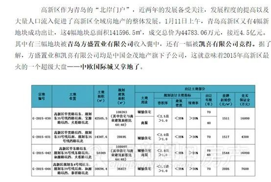 能查到最早的信息,是2014年4月,当时名字还叫方兴地产的金茂,与青岛高新区管委会达成合作意向,开发金茂智慧新城项目,总建筑面积400万方(公司官方资料显示,中欧总建面381万方,目前土地已经全部拿完了)。