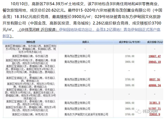 2019年10月10日,金茂再拿7块土地,总价20.62亿元,楼面价3600-3900元/平米之间。
