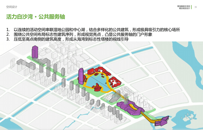 再强调一下,那是6年之前,当其他开发商还都在一个个地块红线内摆弄高层、洋房、叠拼的时候,金茂已经在站在了更高维度,开始规划整片区域的街区、空间、业态,帮政府提高整个片区的势能了。回头看看当初项目设计的资料,这片荒凉的盐碱地,是不是有点活起来的感觉呢: