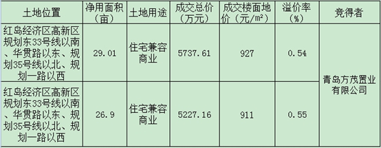 2015年1月26日,方兴地产在红岛拿了首批两块地,土地面积56亩,总价只要1.1亿元,楼面价都不到1000元/平米。
