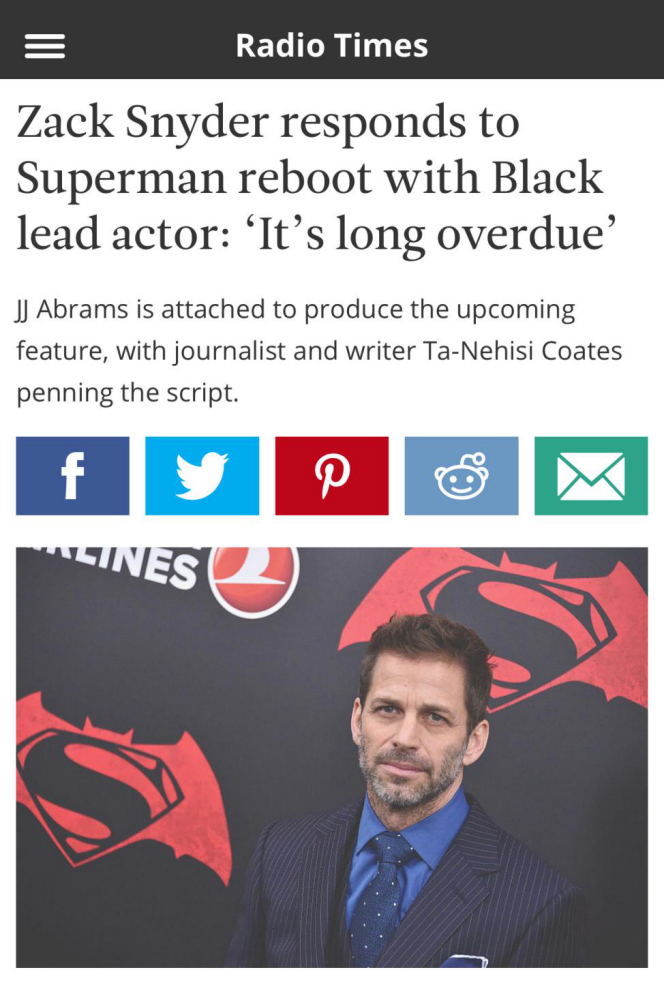当无数观众还在怀念亨利·卡维尔版的大超时,华纳高举“政治正确”的大剑,无情地戳破了观众们的美好幻想。而作为一手打造了亨利·卡维尔版超人的幕后功臣,导演扎克·施耐德在聊到这部黑人超人电影时,也表达了自己对新版超人的期待。至于他是否是在为“政治正确”而背书,这点我们不得而知。
