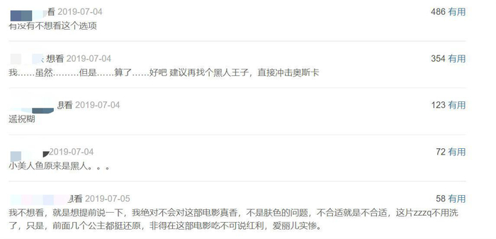 另一方面,《小美人鱼》作为国内观众最为熟悉的迪士尼动画形象之一,童年滤镜的存在,也让多数观众一时无法接受,白人角色突然变成黑人的事实。
