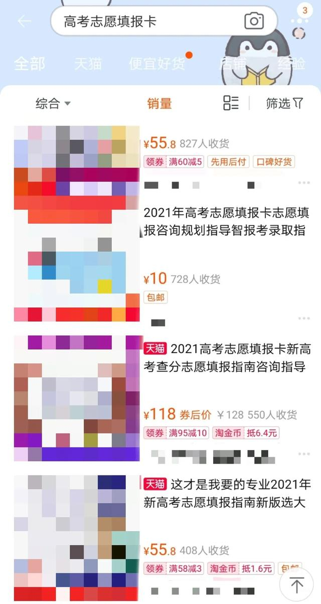 在网购平台,“高考志愿填报卡”相关信息