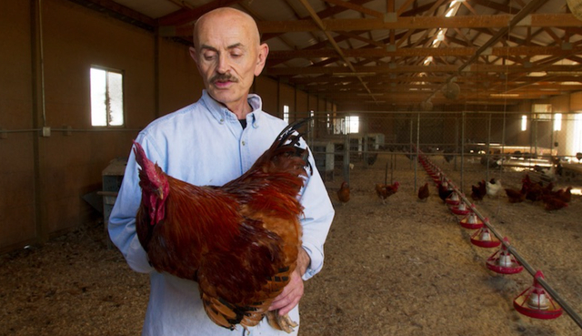 符合放养标准的肉鸡必须“能接触户外”,细想之下你会发现,这就是句空话。(试想,3万只鸡挤在一个鸡棚中,只有一扇偶尔才会打开的小门,通向一块5米见方的泥地。)