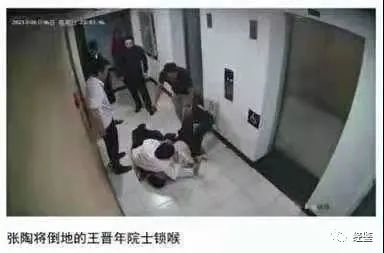 “张陶此时冲入电梯前,在背后一脚将王晋年踹翻在地,劈里啪啦开始了对其长达一个多小时的殴打,扇耳光、脚猛踹身体、勒颈,残暴侮辱手段无所不用其极,期间有多次被同行人员拉开,均被张陶挣脱后进行一轮又一轮的疯狂殴打。此时,86岁高龄的老科学家吴美蓉已经被吓蒙,不知所措,战战兢兢不敢靠前,只能站得远远的边哭边劝,但此时已没有人听她说什么了。由于长时间殴打、勒颈,王晋年多次昏迷。”