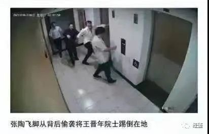 一旁的吴美蓉见状感到十分惶恐,要求离席。当晚10点半左右,张陶和其公司下属送两位院士回到王晋年在北京的住所。在王晋年乘电梯前,张陶背后一脚将王晋年踹翻在地,对王晋年开始殴打。之后还将吴美蓉推翻在地,并将王晋年从电梯中拽出继续殴打。