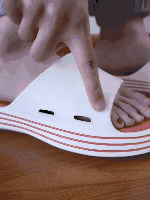 这款拖鞋在设计鞋面时,特别在两侧留有两个透气孔,给我们的脚有充足的呼吸空间,保持鞋内干爽。