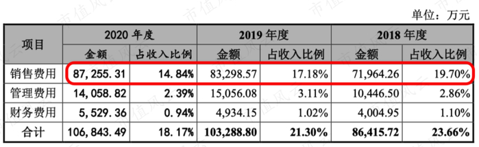 销售费用较多的支出是市场宣传推广费用和职工薪酬,占了将近九成。