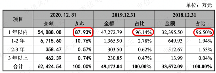 应收账款账龄也主要集中在1年以内,占比96%以上,相对安全。