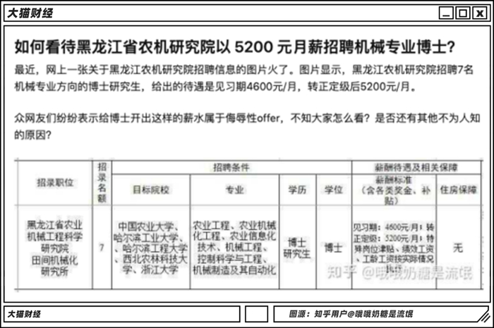 当然,有些研究单位的吸引力也确实差点,比如5200元的月薪找一个专业博士,估计是比较难的。