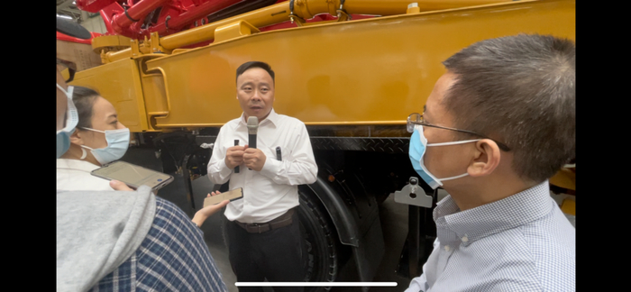 三一泵送公司副总经理蒋庆彬,是个很容易让人产生好感的工业人,下面我们称呼他为蒋工。他全程激情讲解挖掘机、泵机等工程机械的生产线改造。
