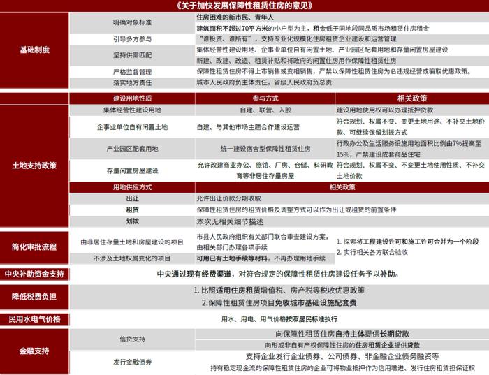 图表3:本次国办《关于加快发展保障性租赁住房的意见》的政策要点梳理