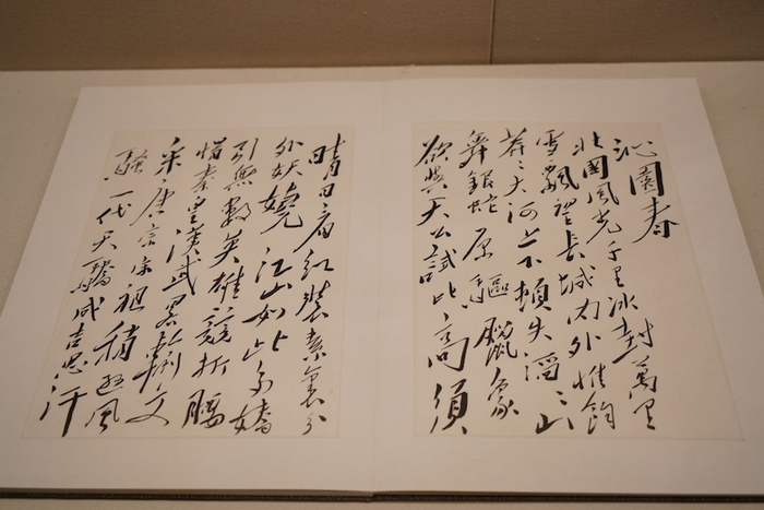 现场也展出一件“致叶恭绰的信和《沁园春·雪》”。由叶恭绰的夫人钟启明捐赠,原藏于国家图书馆,现存中央档案馆。此次展出的是复制件。此书为毛泽东致书画家、收藏家叶恭绰的回信,并为其题写《沁园春·雪》。