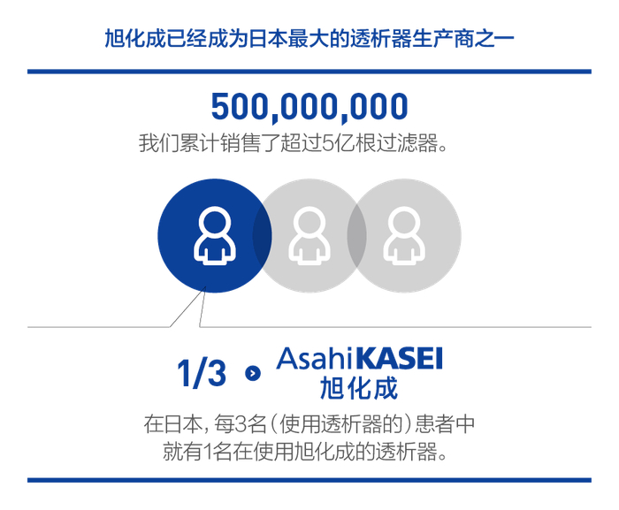 “迄今为止,我们累计销售了超过5亿根滤器。在日本,每3名(使用透析器的)患者中就有1名在使用旭化成的透析器。”住吉说。