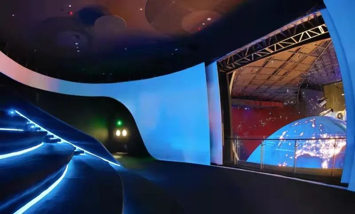全馆运用精心设计的环境氛围、灯光音效和高仿真场景模拟手段,构建沉浸式宇宙空间体验环境;采用体感互动、数据可视化、AR、VR、生物识别等各类先进的展示手段,集视、听、触于一体,充分调动观众的情绪和感官,带领他们在神秘美丽、铭刻心动的时空意境中,获得全新的宇宙探索体验。在300余件展品中,原创比例高达85%,互动展品占比50%以上。