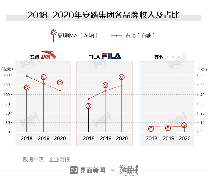 靠买来的“洋品牌”赚钱也不容易。安踏集团收购品牌中,除FILA外,其他品牌收入占比不足一成。
