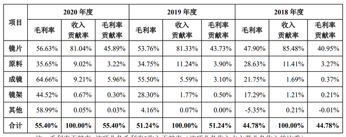 数据显示,明月镜片电商自营镜片产品2020年的毛利率高达91.7%。对此公司的解释为发行人作为上游镜片生产商,可以获得零售端的高溢价定价权,从而获得较高的毛利空间。