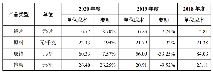 实际上,通过“单位成本分析”可以看到,2020年明月镜片卖的镜片大约成本为6.77元/片,成镜也大约为60.33元/副,想想市面上的售价,高毛利率也就理所当然了。