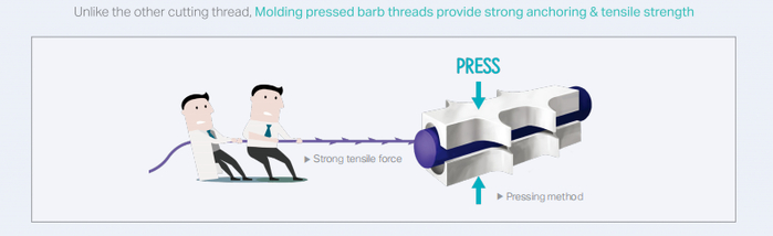 通过压印制模工艺压印成型的MINT秘特线,其拉伸度和锚定强度是传统切割线的4倍,因此具有强效有力的固定提拉效果。