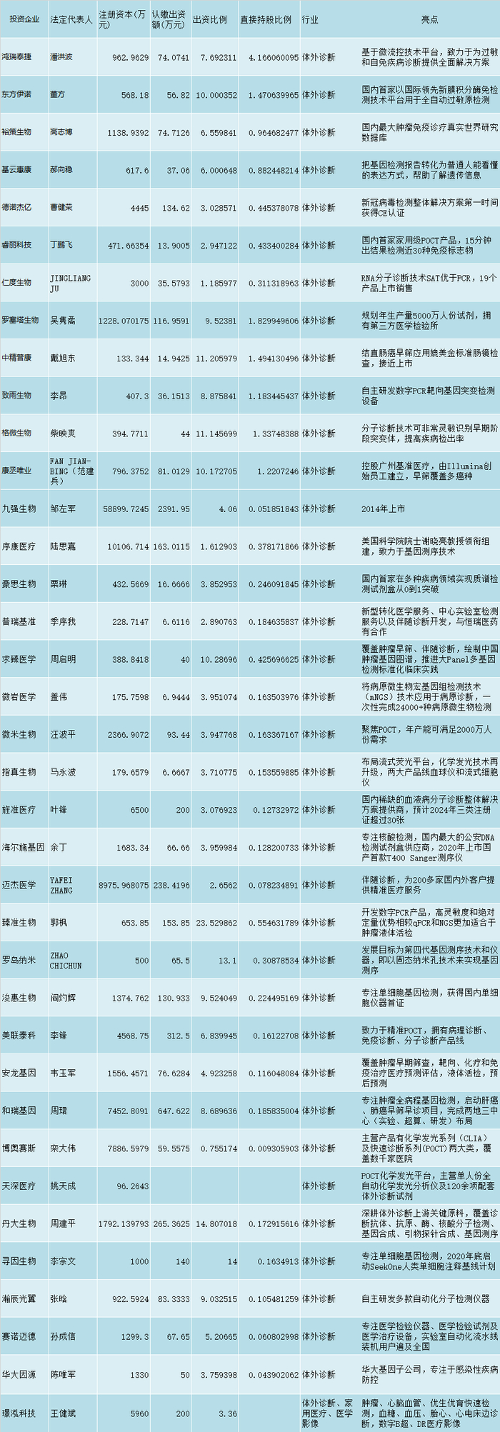 泰格医药投资的部分体外诊断企业