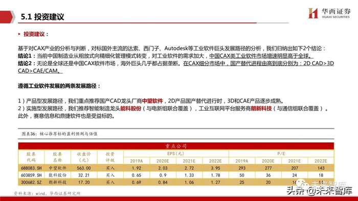 欧美已经诞生了众多综合性的工业巨头,包括西门子(1149亿欧元)、达索(501亿欧元)、Autodesk(645亿美元)、ANSYS(294亿 美元)、PTC(155亿美元),中国CAD龙头厂商中望软件(349亿元)长期成长空间巨大。