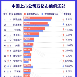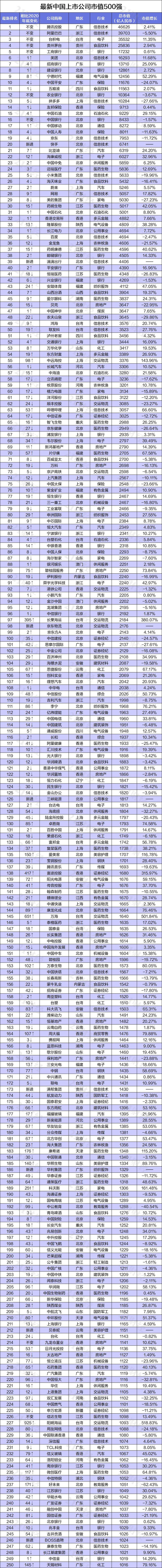最新中国公司市值500强:13家破万亿!宁德时代、招行挺进前十,还有哪些入围?(名单)