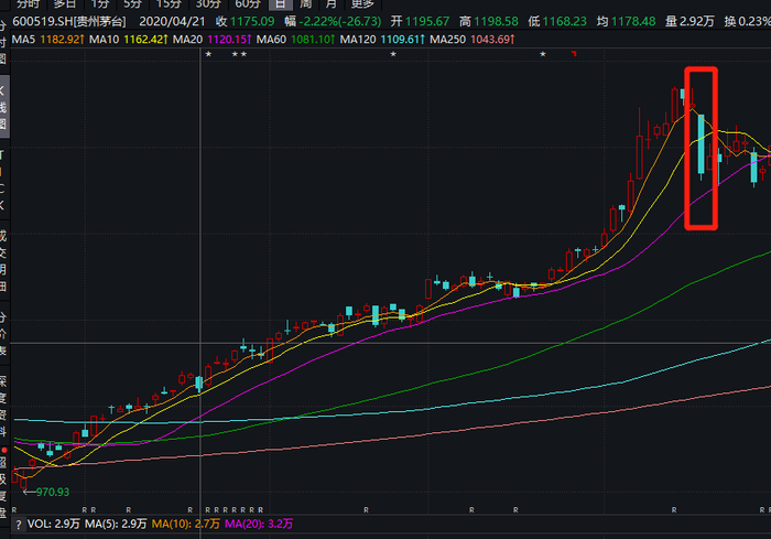 次日,茅台股价一改连涨之势,转头大跌7.9%。