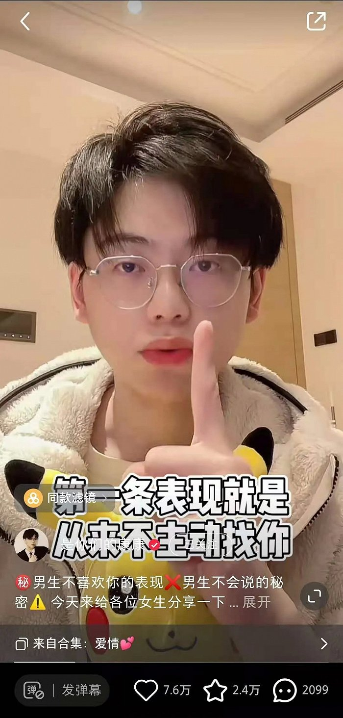 视频中的他通常是以邻家大哥的口吻,向发来私信的女孩们揭秘男生的真实想法,永远带着亲和的感觉。哪怕一些女孩明显是被海王渣男“养鱼”了,他也试图用女孩最能接受的方式给她讲清楚:WHY?