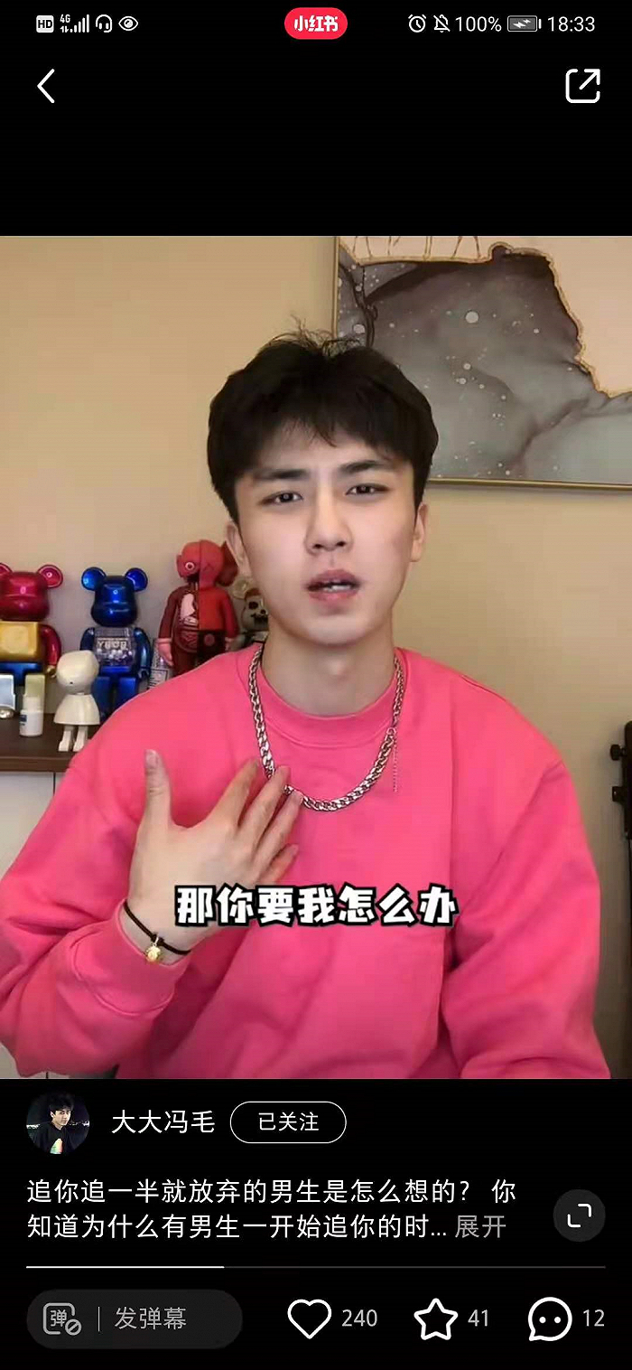 在他各个视频的评论里,女孩们分成了两大阵营。一波是继续向他提出新问题,给他们的下一期视频提供话题和素材的,一波是“完了我全中”、“太好了我男朋友是真心喜欢我”这种求安慰或凡尔赛式的留言。