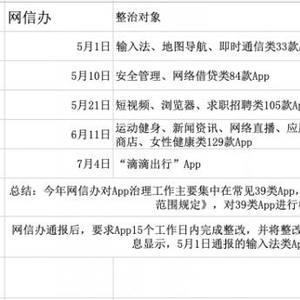网信办方面,对App的治理整顿已进入常态化阶段,并根据相关法律法规逐渐细化。