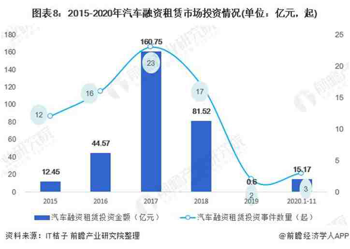 其一,源于共享经济的接连出现问题,连带投融资环境急转直下,导致大批中端尾部租车企业大遭淘汰,而往头部玩家聚集。数据显示,2017-2019年,中国汽车融资租赁市场投资规模及事件数字持续下降。2019年,汽车融资租赁领域融资事件数量仅为2起,融资市场不到1亿元。
