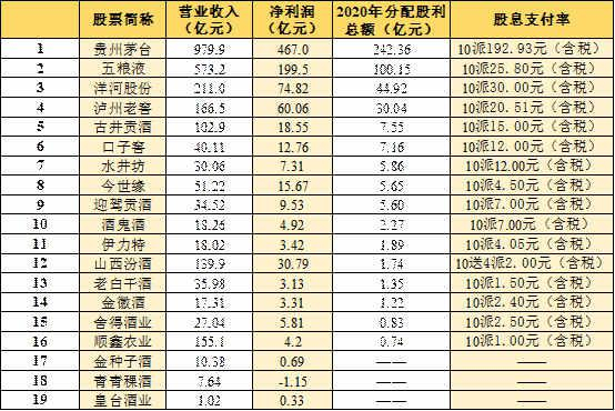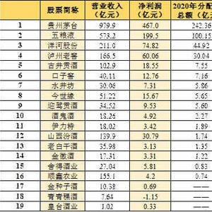 2020年上市白酒企业分红了 瞧瞧谁是铁公鸡