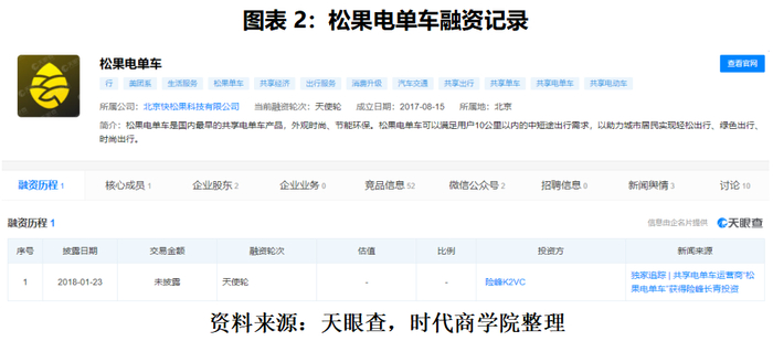 天眼查显示,松果电单车在一级市场仅有1个公开披露的融资记录。