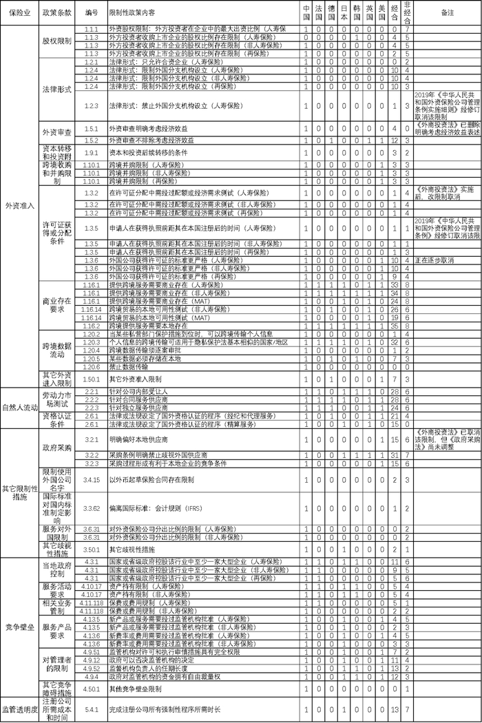 附表二:保险业服务贸易限制情况