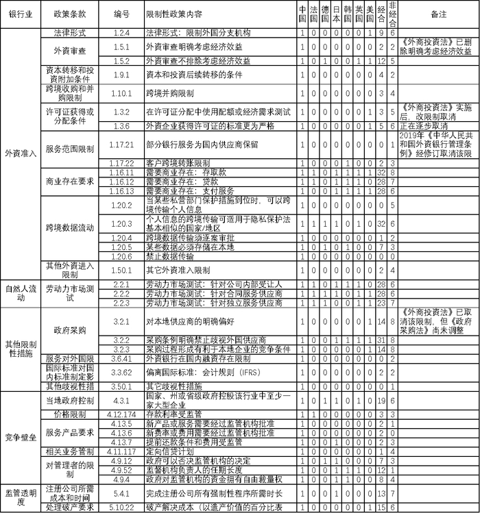 附表一:银行业服务贸易限制情况